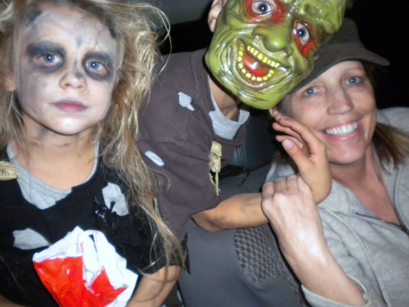 We drove around in my Mom's truck; the kids would hop out and run to a few doors then got back in. It was nice to do it this way cause it made it easier to hit more doors all around town. It brought back some childhood memories!!